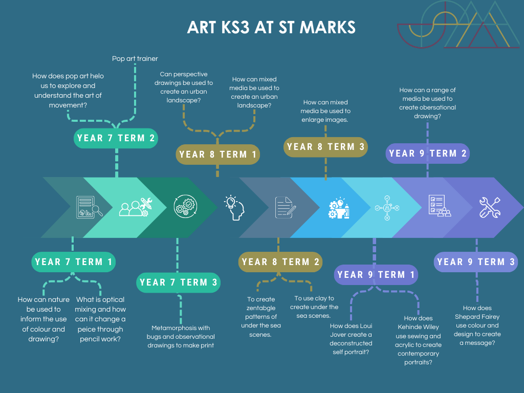At St Mark’s CE school, students are supported to develop their artistic ability; they are encouraged to explore their creative flair, express their ideas using visual language and be given the skills that they can use in future careers.