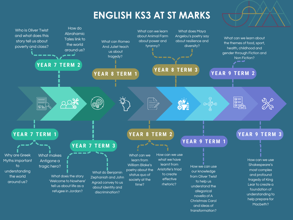 English is at the centre of the curriculum at St Mark’s CE school, providing a gateway to all other learning. Knowing how to read, write and speak gives access to the lives which we live. The curriculum is therefore sequenced so that students can understand, question, critique and create rules, stories and patterns in a true range of literature and, more broadly, in society.