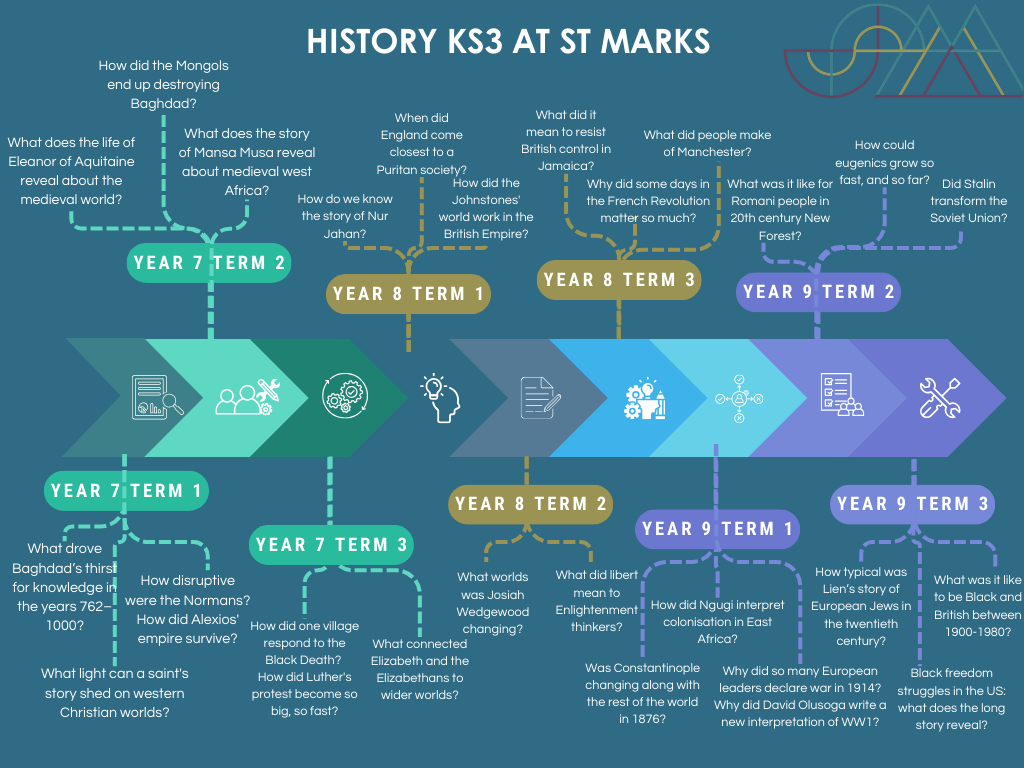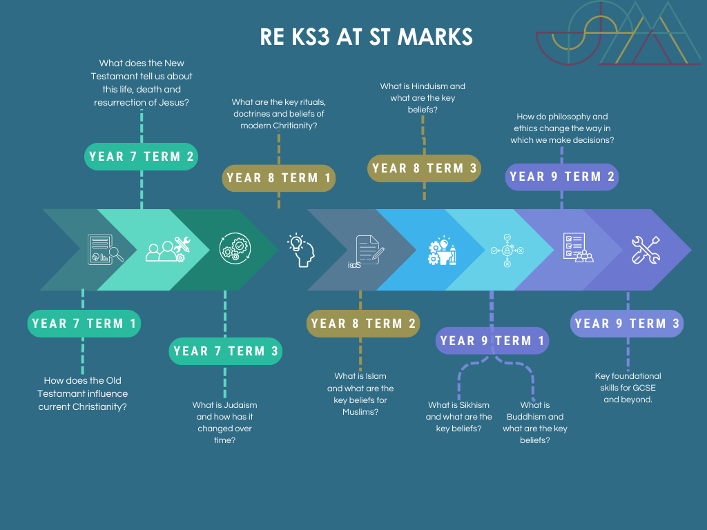 As a school we follow the agreed syllabus of Living Difference iV, weaving in units from Understanding Christianity to ensure that our pupils leave St Mark’s with the knowledge and understanding of key concepts through key religions. As a church school it is our ambition that all students take the RE GCSE, for which we have chosen AQA as the course content links with the students previous knowledge whilst exploring ethics and beliefs of different religions and their own, giving them a voice throughout the course.
