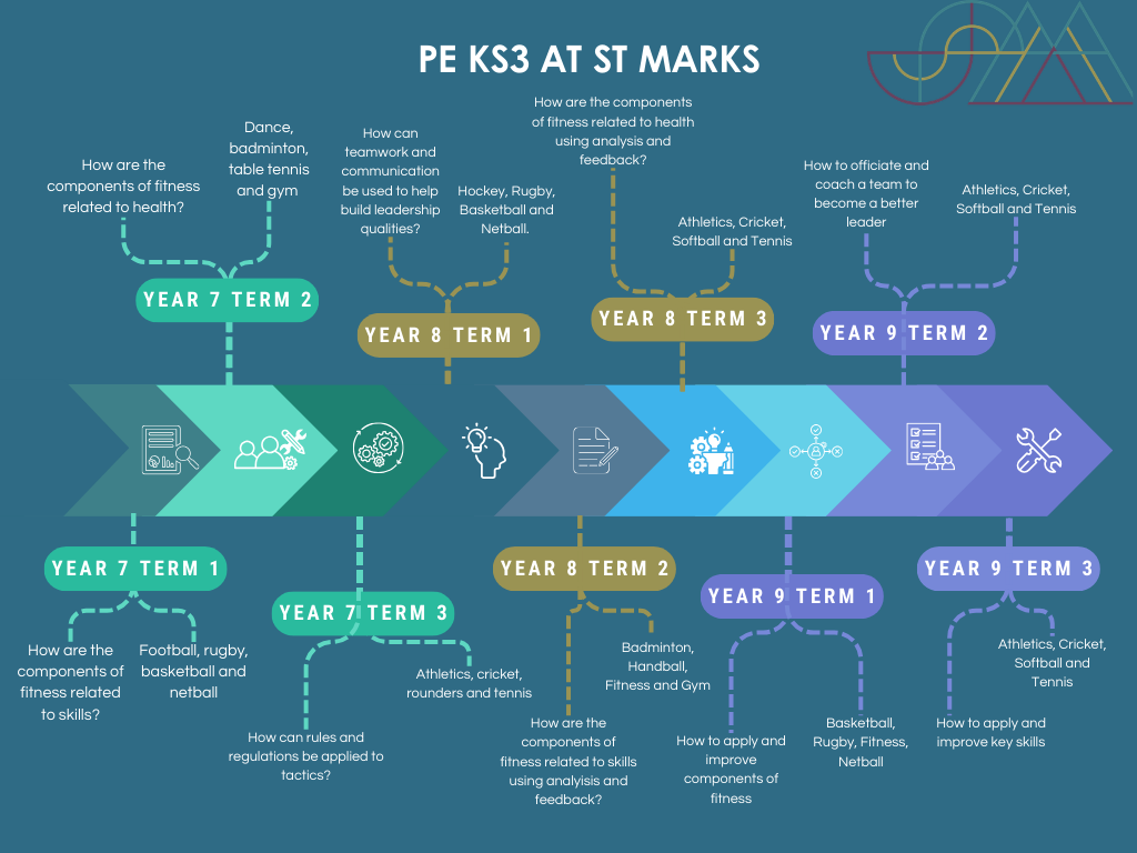 At St Mark’s we have designed our own unique PE curriculum in order to develop a lifelong love of sport and/or exercise alongside an engrained understanding of the importance of health and fitness. We aim to develop a genuine passion for sport and leadership that can be used in different walks of life and offer genuine pathways to career opportunities.
